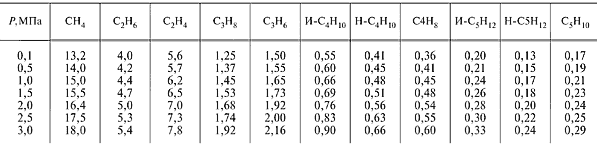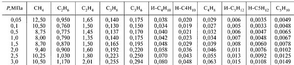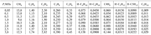 Таблица 4. Фугитивность паров углеводородов при температуре минус 20°С