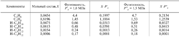 где Xi - содержание i-го компонента в сжиженном газе в мольных долях; fi - фугитивность i-гo компонента в сжиженном газе, МПа, определенная по формуле